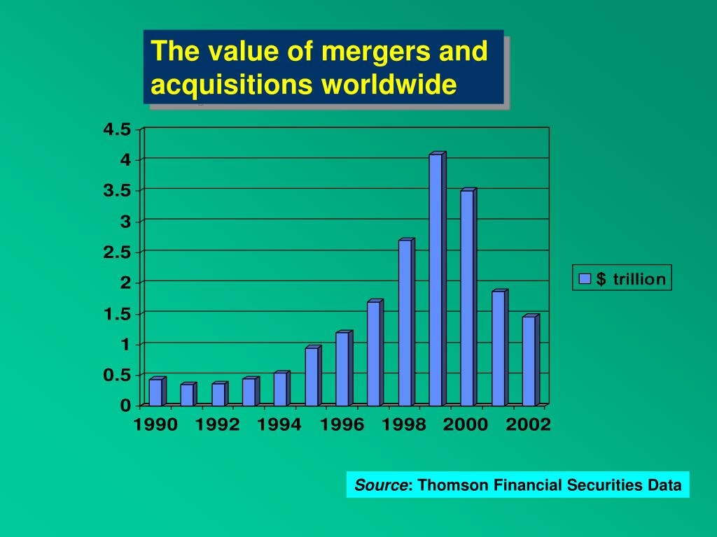 The value of mergers and acquisitions worldwide Source: Thomson Financial Securities Data