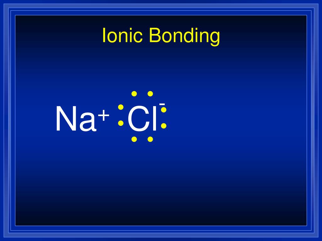 Ionic Bonding • Anions and cations are held together by opposite charges. • Ionic compounds are called salts. • Simplest ratio is called the formula unit. • The bond is formed through the transfer of electrons. • Electrons are transferred to achieve noble gas configuration.