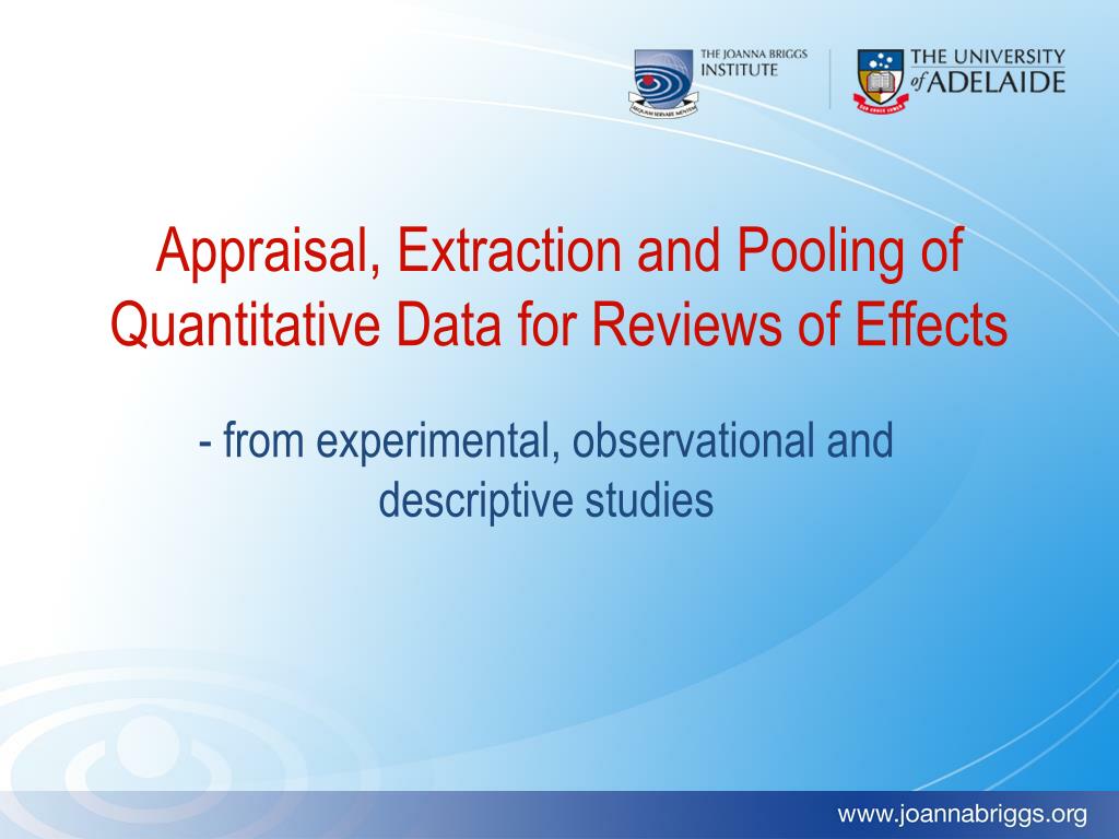 Appraisal, Extraction and Pooling of Quantitative Data for Reviews of Effects - from experimental, observational and descriptive studies