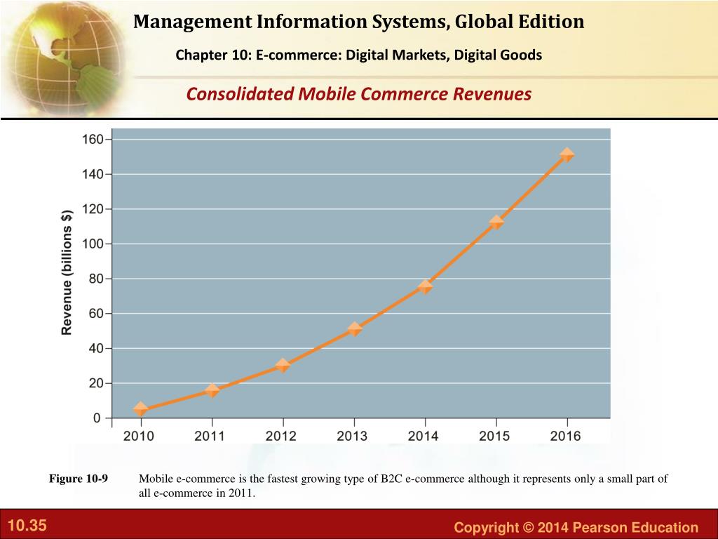 Mobile e-commerce is the fastest growing type of B2C e-commerce although it represents only a small part of all e-commerce in 2011. Figure 10-9 Consolidated Mobile Commerce Revenues