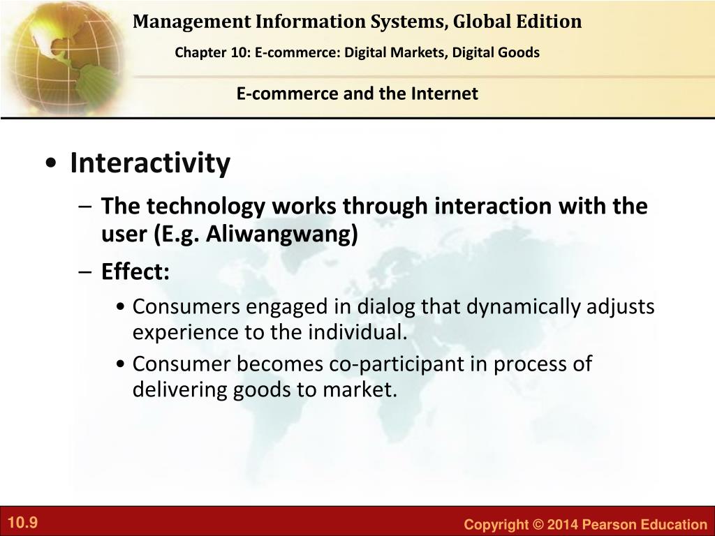 E-commerce and the Internet • Interactivity • The technology works through interaction with the user (E.g. Aliwangwang) • Effect: • Consumers engaged in dialog that dynamically adjusts experience to the individual. • Consumer becomes co-participant in process of delivering goods to market.