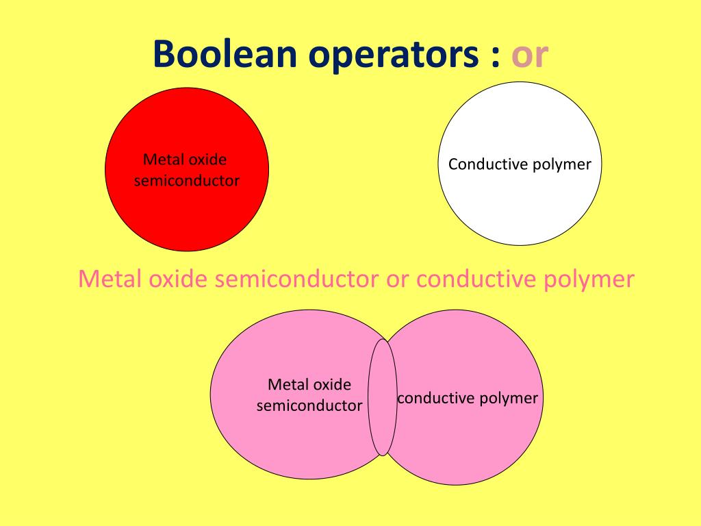 Boolean operators : or Conductive polymer Metal oxide semiconductor Metal oxide semiconductor or conductive polymer Metal oxide semiconductor conductive polymer