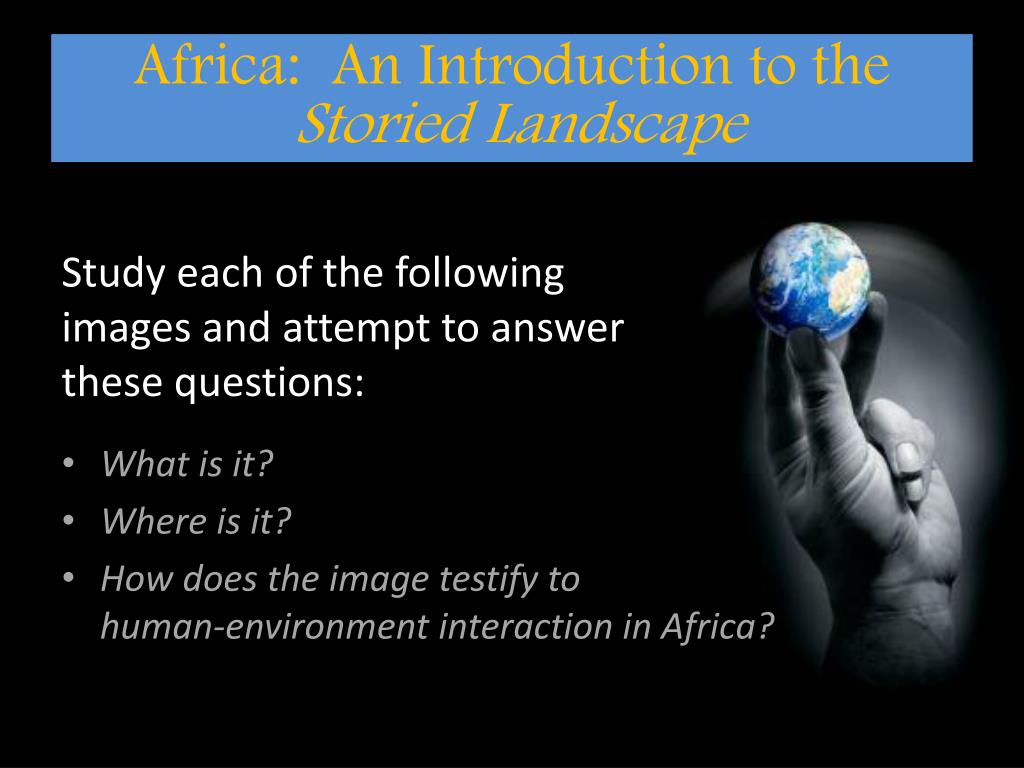 Africa: An Introduction to the Storied Landscape Study each of the following images and attempt to answer these questions: • What is it? • Where is it? • How does the image testify to human-environment interaction in Africa?