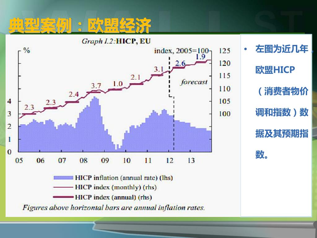典型案例:欧盟经济 • 左图为近几年,欧盟HICP(消费者物价调和指数)数据及其预期指数。