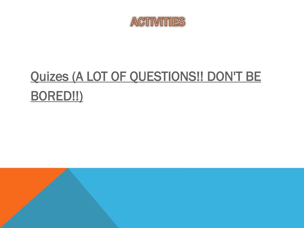 Activities • Quizes (A LOT OF QUESTIONS!! DON'T BE • BORED!!)