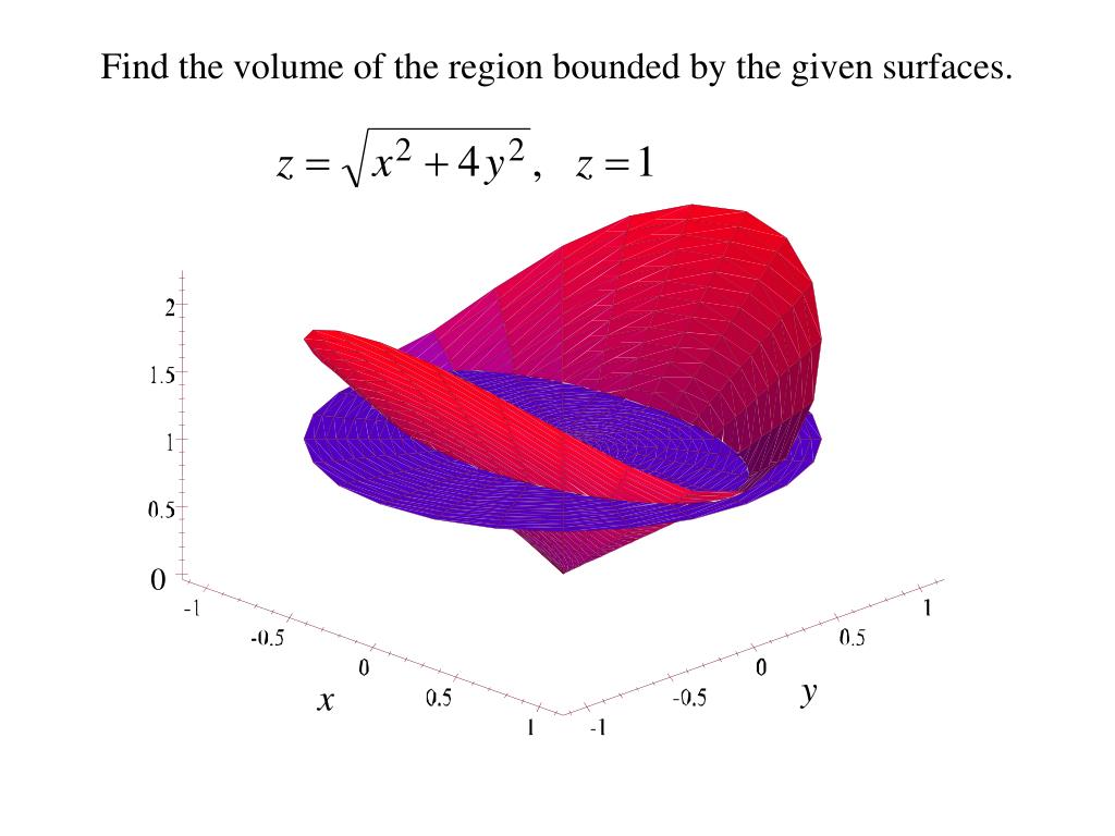 1 0.8 0.6 0.4 0.2 0 -0.4 -0.4 -0.2 -0.2 0 0 0.2 0.2 0.4 0.4 Examples Volume of an ice-cream cone with radius 0.5and angle