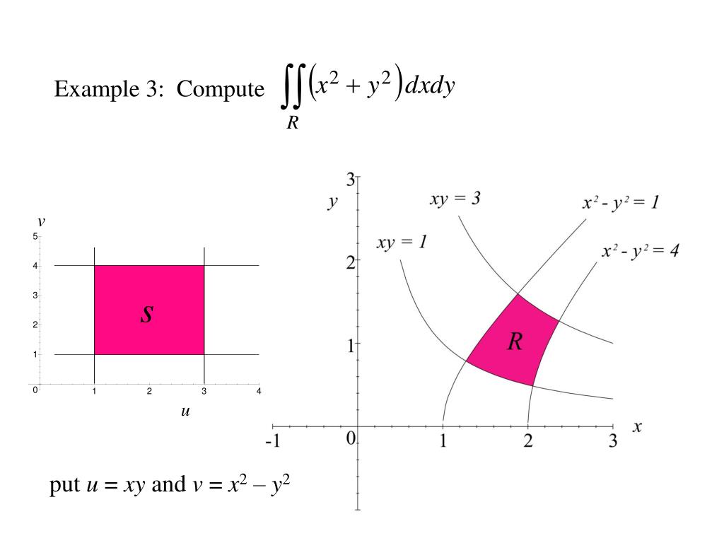 Example 3: Compute v 5 4 s 3 2 1 0 1 2 3 4 u put u = xy and v = x2 – y2