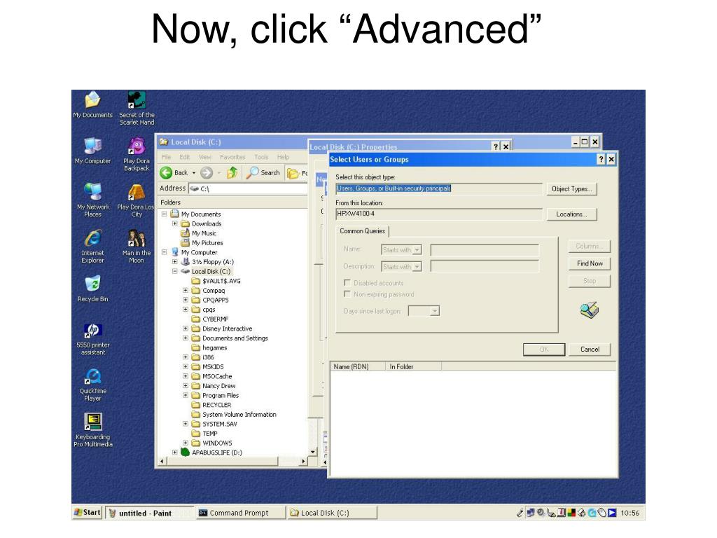 Do not remove the permissions from Everyone without first assigning permissions to some other user or group (or you will cut off your own access to the folder). To add permissions, click the “Add” button.