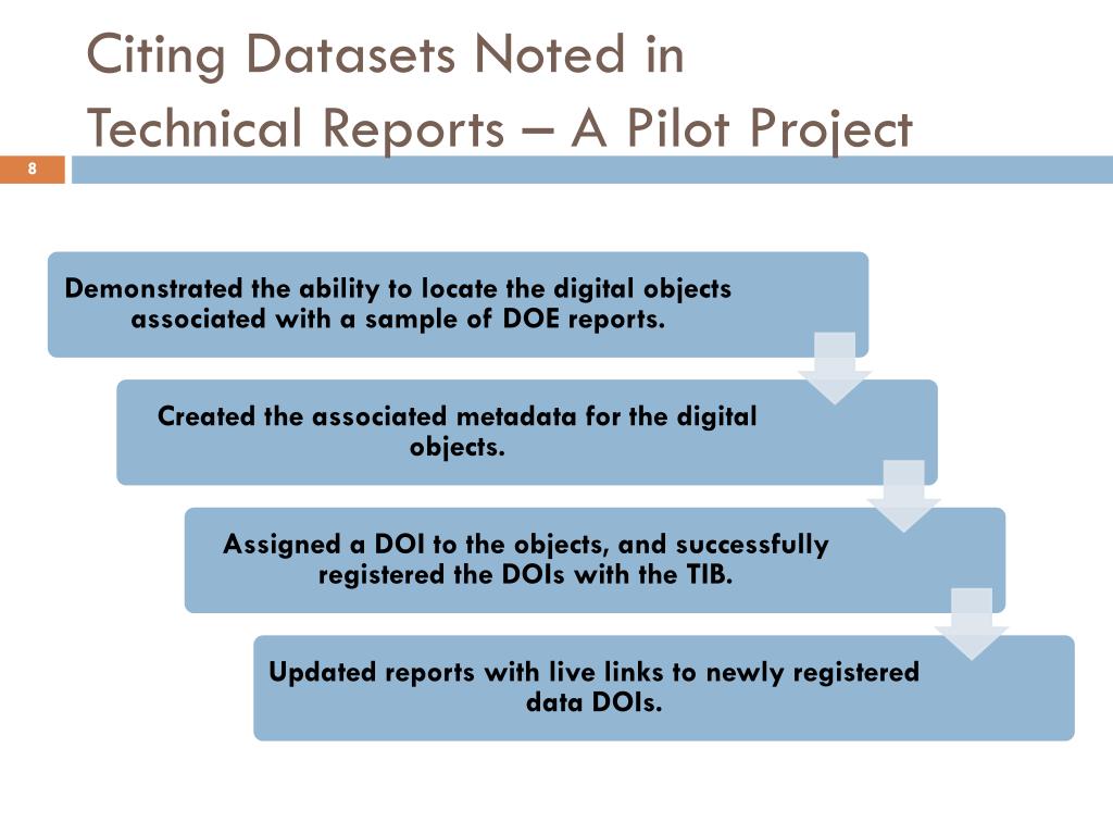 Citing Datasets Noted in Technical Reports – A Pilot Project