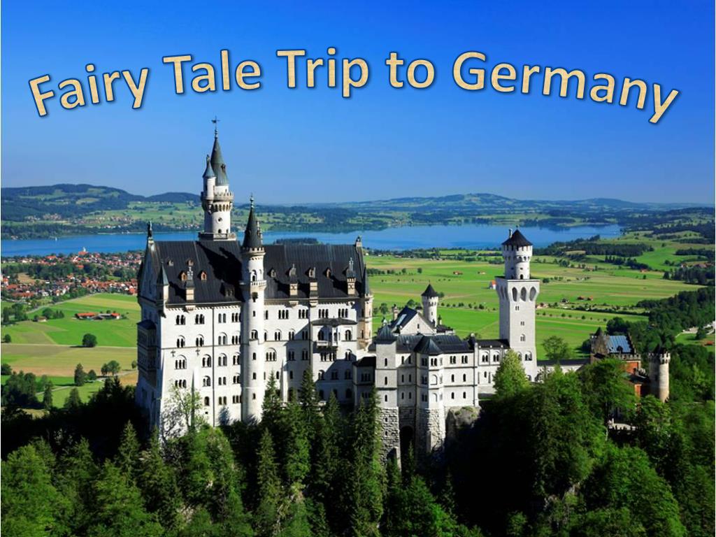Fairy Tale Trip to Germany. SMALL TOWN, TWO CASTLES. Fussen , Germany Foothills of Bavarian Alps Population 14,000. NEUSCHWANSTEIN CASTLE. Name means New Swan Stone Built by King Ludwig II beginning 1869. Inspiration for Disney’s sleeping Beauty Castle. Ludwig’s Homage to Wagner.