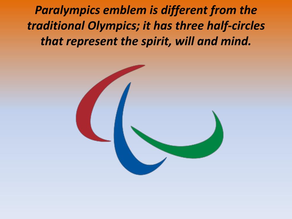 ParalympicsemblemisdifferentfromthetraditionalOlympics; ithasthreehalf-circlesthatrepresentthespirit, willandmind.