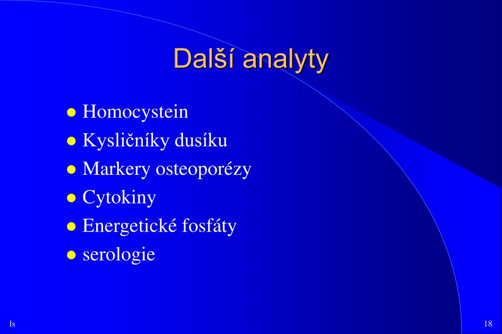 Další analyty • Homocystein • Kysličníky dusíku • Markery osteoporézy • Cytokiny • Energetické fosfáty • serologie