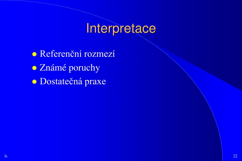 Interpretace • Referenční rozmezí • Známé poruchy • Dostatečná praxe