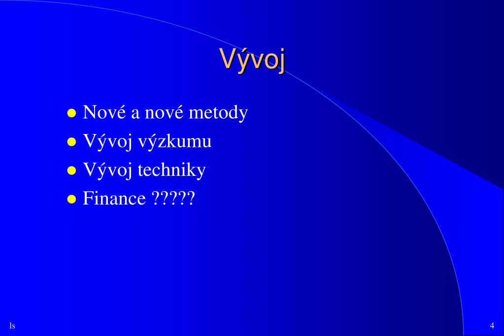 Vývoj • Nové a nové metody • Vývoj výzkumu • Vývoj techniky • Finance ?????