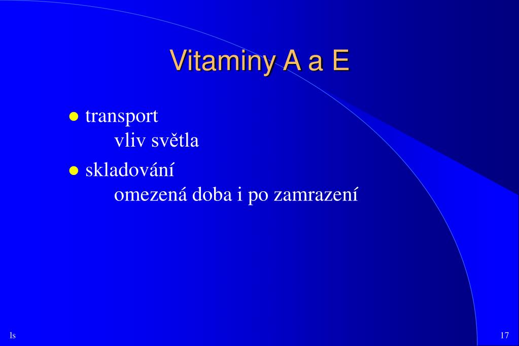 Vitaminy A a E • transport vliv světla • skladování omezená doba i po zamrazení