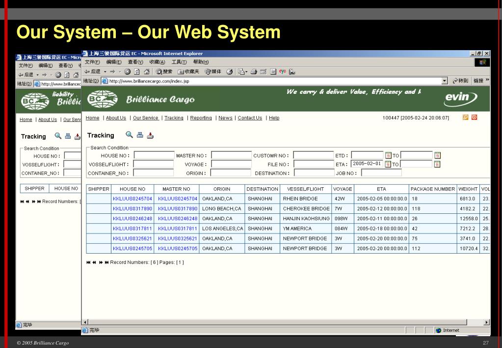 About Us – The Values • Brilliance Cargo Management Co., Ltd. is a • Class A Freight Forwarder, based in Shanghai. • Young but aggressive company • Professional people • Integrated IT system • Service oriented • Local company, International mind • Good financial situation