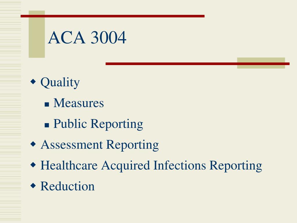 ACA 3004 • Quality • Measures • Public Reporting • Assessment Reporting • Healthcare Acquired Infections Reporting • Reduction