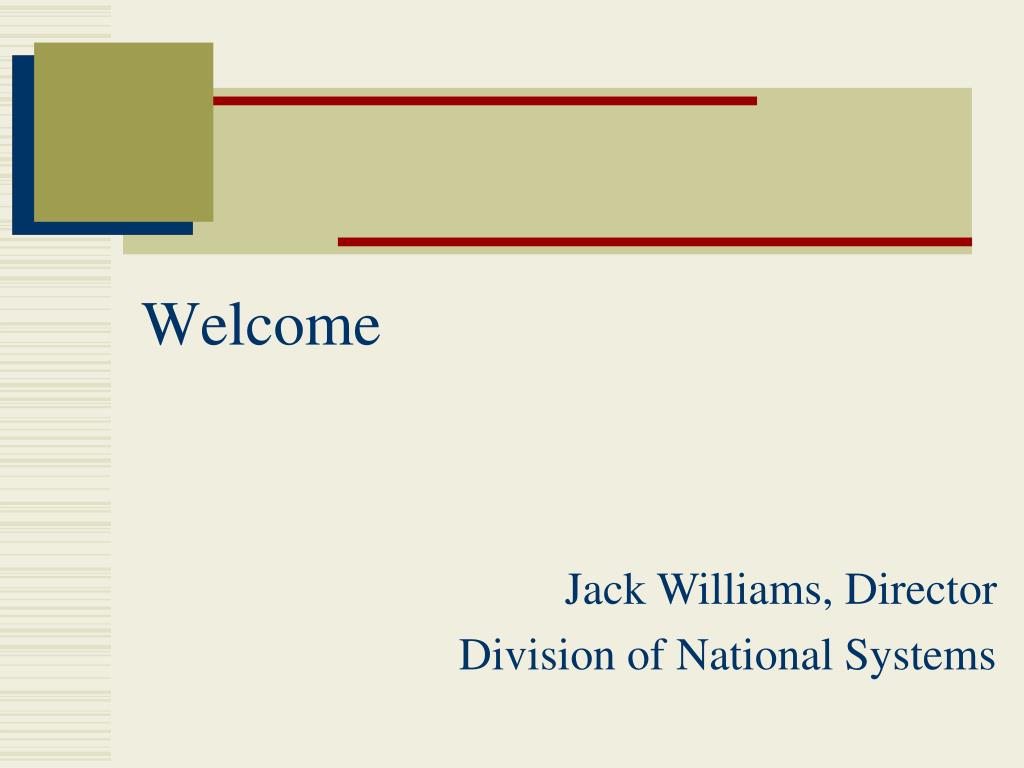 Welcome Jack Williams, Director Division of National Systems