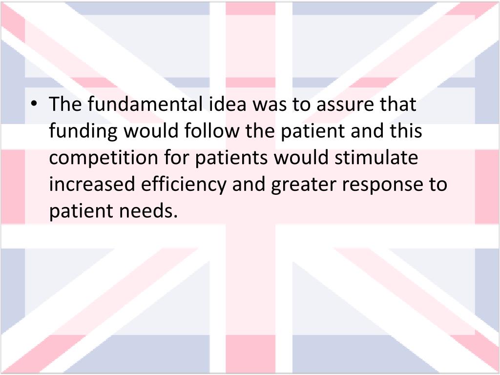 The fundamental idea was to assure that funding would follow the patient and this competition for patients would stimulate increased efficiency and greater response to patient needs.