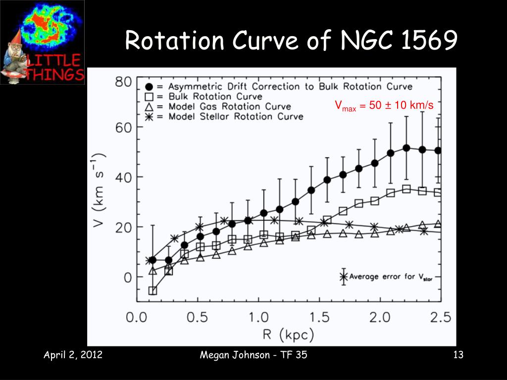 Rotation Curve of NGC 1569 Vmax = 50 ± 10 km/s Megan Johnson - TF 35