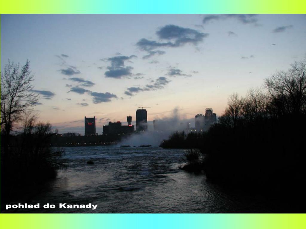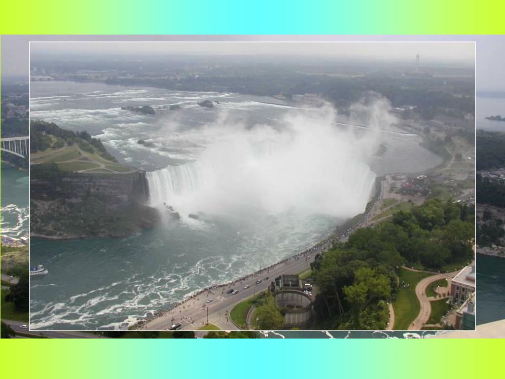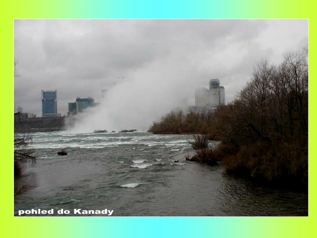 NIAGARSKÉ VODOPÁDY. ZE STRANY USA A KANADY. pohled do Kanady. NIAGARSKÉ VODOPÁDY.