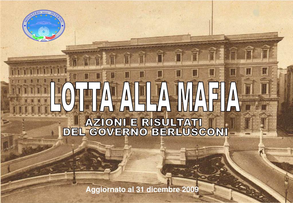 LOTTA ALLA MAFIA AZIONI E RISULTATI DEL GOVERNO BERLUSCONI Aggiornato al 31 dicembre 2009