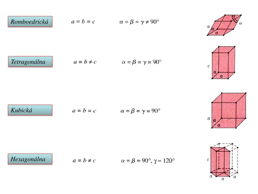 Romboedrická Tetragonálna Kubická Hexagonálna