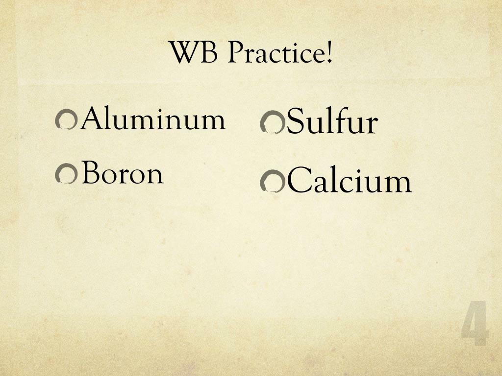 WB Practice! • Aluminum • Boron • Sulfur • Calcium
