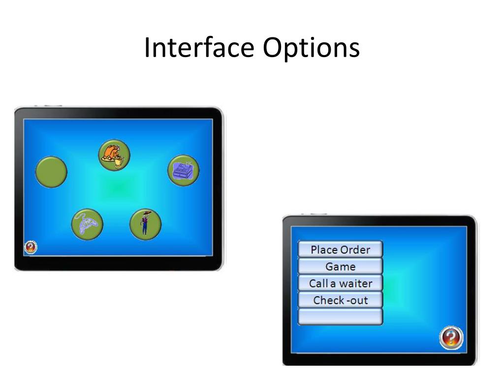 Revenue Model/Marketing • Revenue source options ( could be inclusive): • Charge for the system, programming menus/price/options and hardware, • Charge for a monthly fee • Charge for advertisement • Joint Venture: Charge for Rental of equipment and sales commission generated from the restaurant. • Charge for customization
