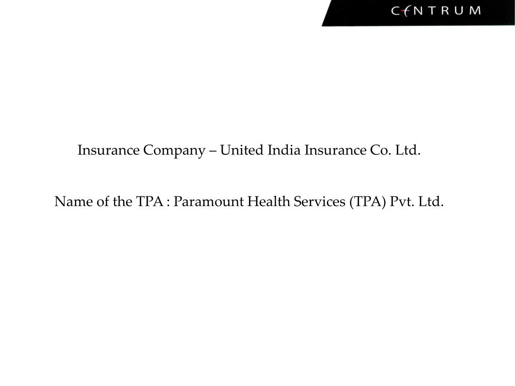 Insurance Company – United India Insurance Co. Ltd.Name of the TPA : Paramount Health Services (TPA) Pvt. Ltd.