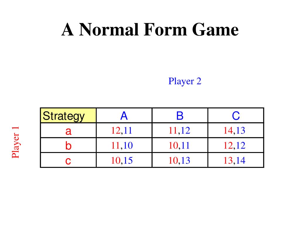 11,10 10,11 12,12 10,15 10,13 13,14 A Normal Form Game Player 2 12,11 11,12 14,13 Player 1