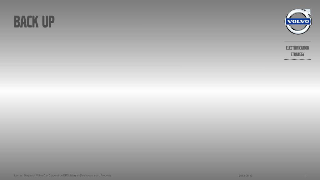 Volvo car corporation • ElectrificationStrategy Lennart Stegland, Volvo Car Corporation EPS, lsteglan@volvocars.com, Propriety