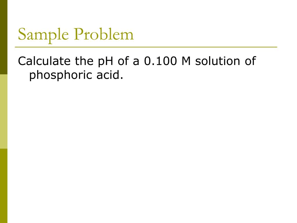 Sample Problem Calculate the pH of a 0.100 M solution of phosphoric acid.