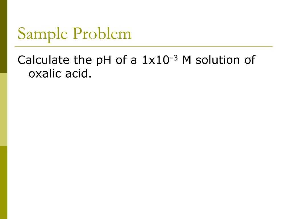Sample Problem Calculate the pH of a 1x10-3 M solution of oxalic acid.