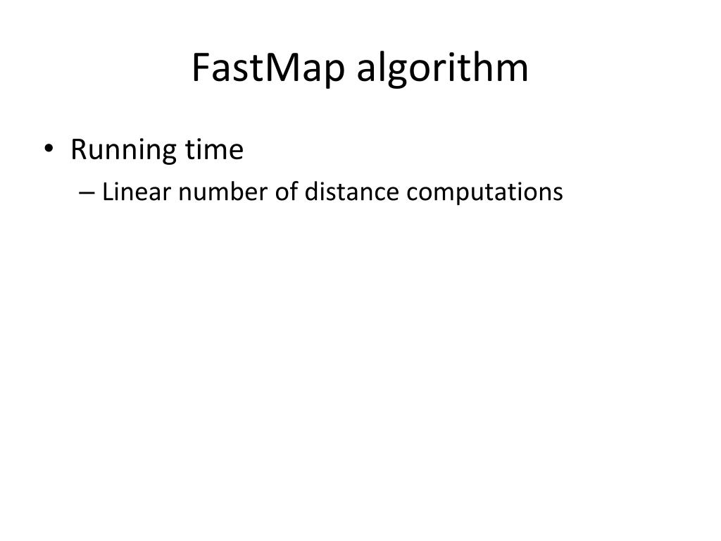 FastMap algorithm • Running time • Linear number of distance computations