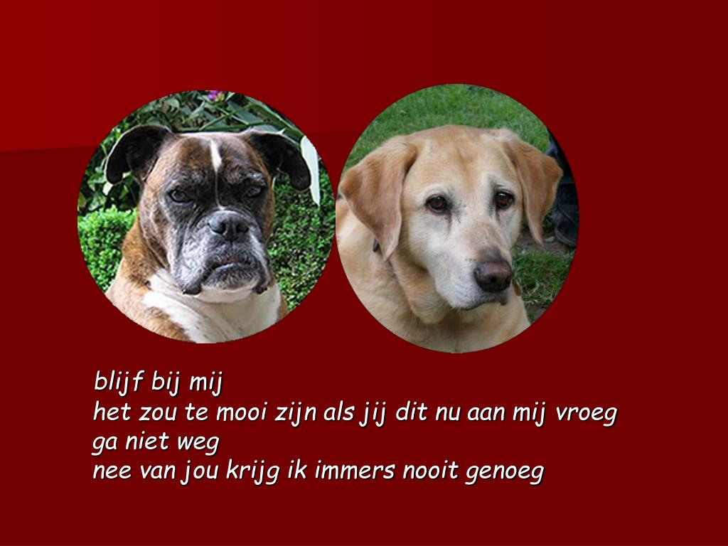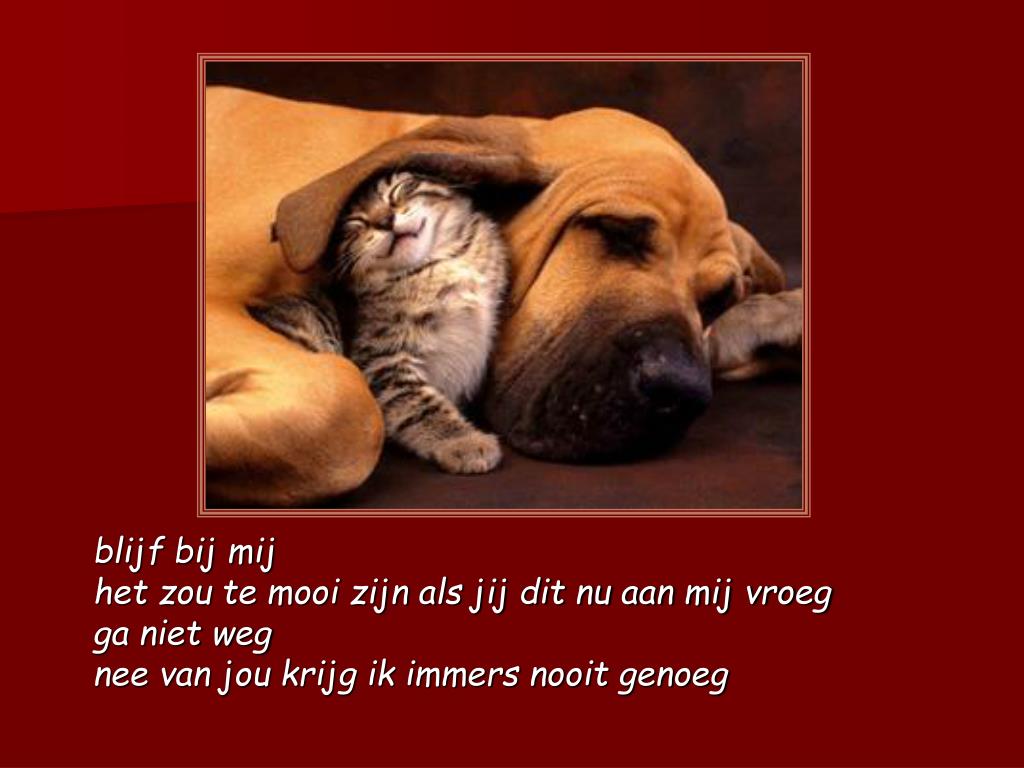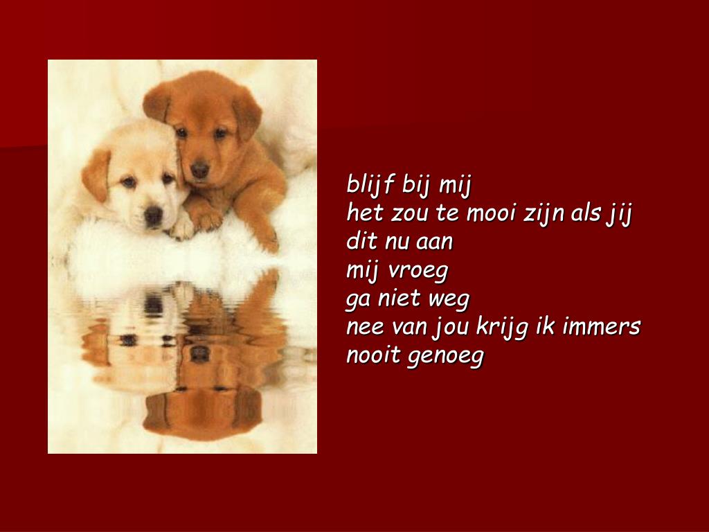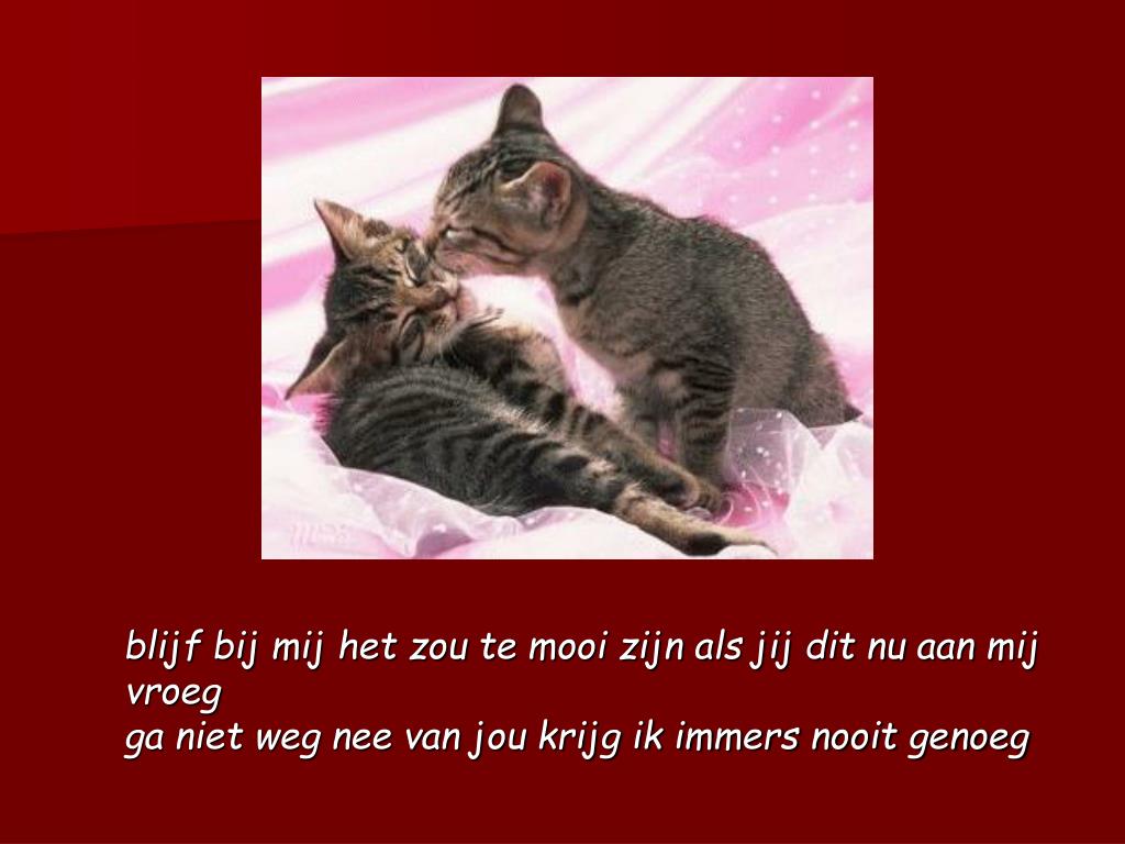blijf bij mijhet zou te mooi zijn als jij dit nu aan mij vroeg, ga niet wegnee van jou krijg ik immers nooit genoeg