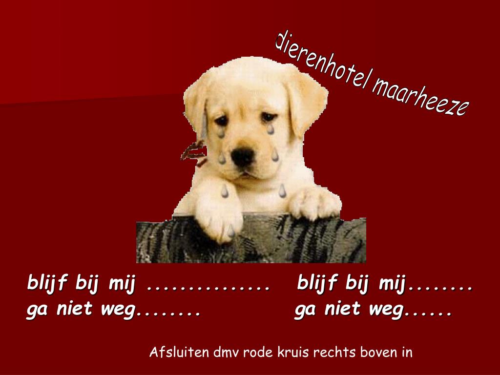 dierenhotel maarheeze blijf bij mij ............... blijf bij mij........ ga niet weg........ ga niet weg...... Afsluiten dmv rode kruis rechts boven in