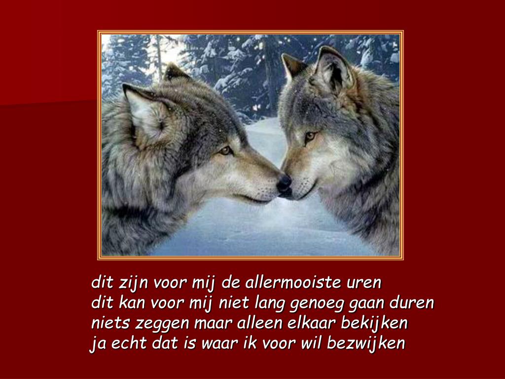 Dit zijn voor mij de allermooiste urenDat kan voor mij niet lang genoeg gaan durenniets zeggen maar alleen elkaar bekijkenja echt dat is waarvoor ik wil bezwijken