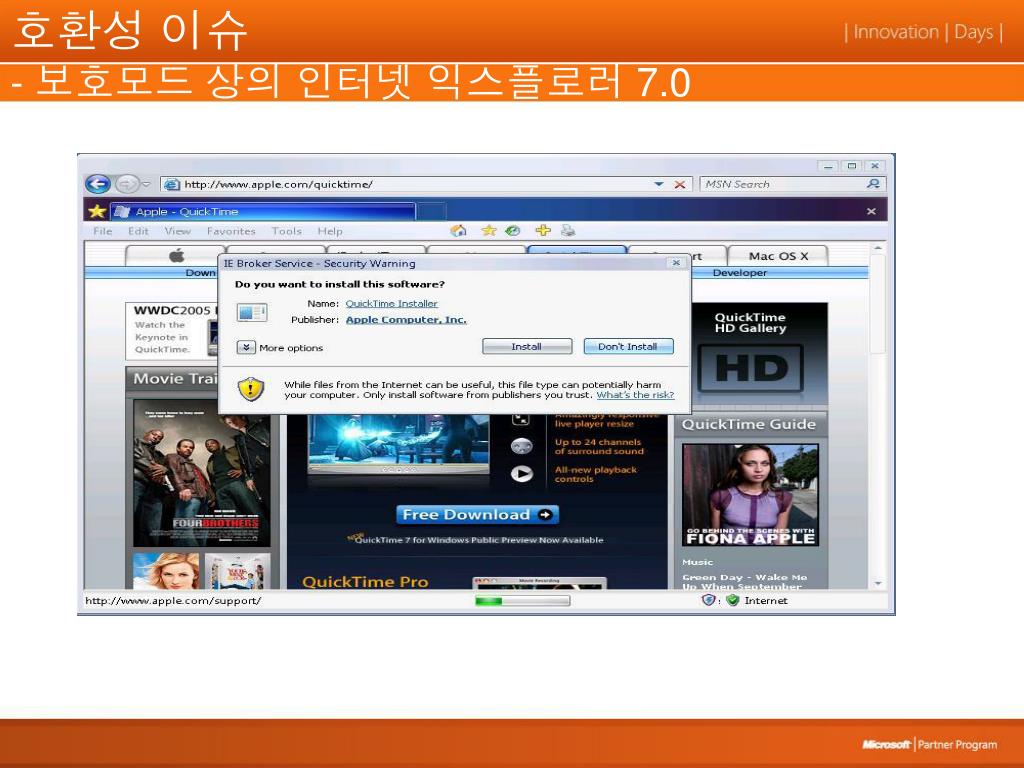 호환성 이슈 - 보호모드 상의 인터넷 익스플로러 7.0