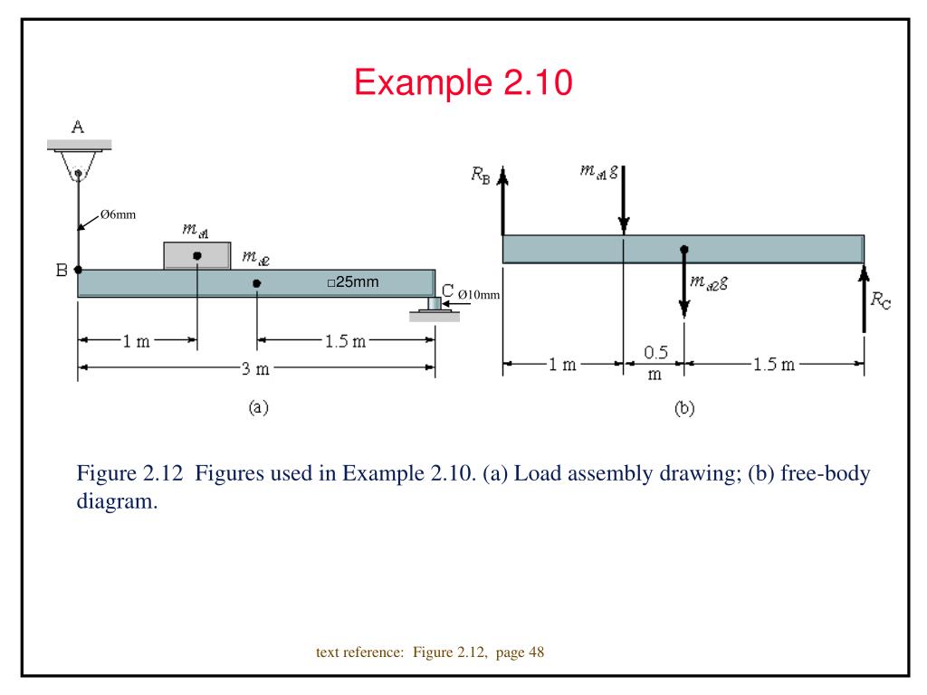 Example 2.10 Ø6mm □25mm Ø10mm Figure 2.12 Figures used in Example 2.10. (a) Load assembly drawing; (b) free-body diagram. text reference: Figure 2.12, page 48