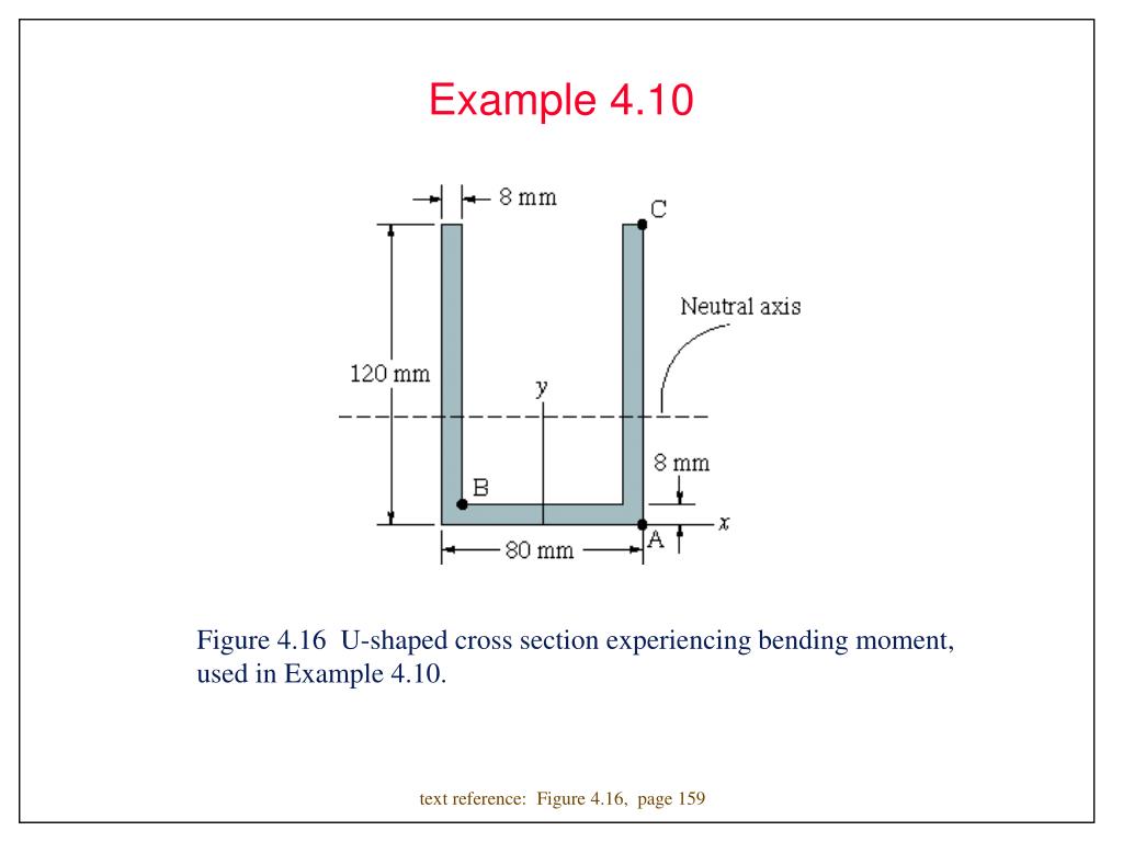 Example 4.10 Figure 4.16 U-shaped cross section experiencing bending moment, used in Example 4.10. text reference: Figure 4.16, page 159