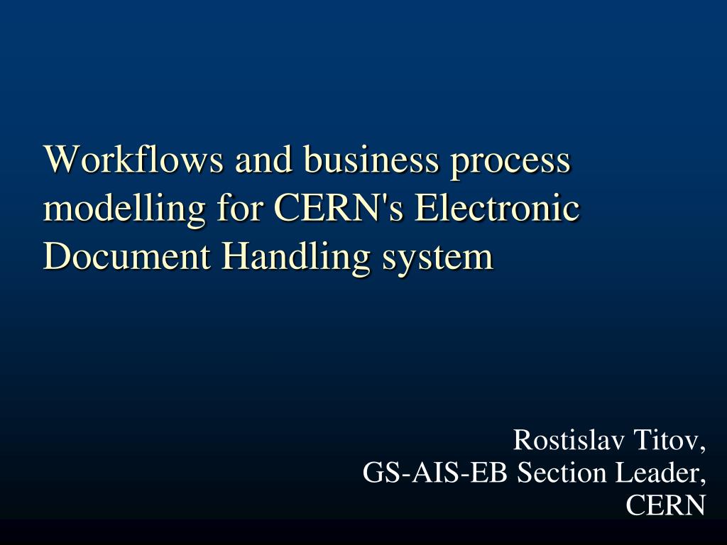 Workflows and business process modelling for CERN's Electronic Document Handling system RostislavTitov,GS-AIS-EB Section Leader, CERN