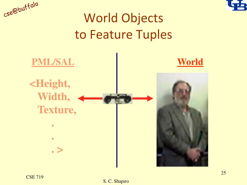 World Objectsto Feature Tuples PML/SAL World <Height, Width, Texture, . . . > CSE 719 S. C. Shapiro