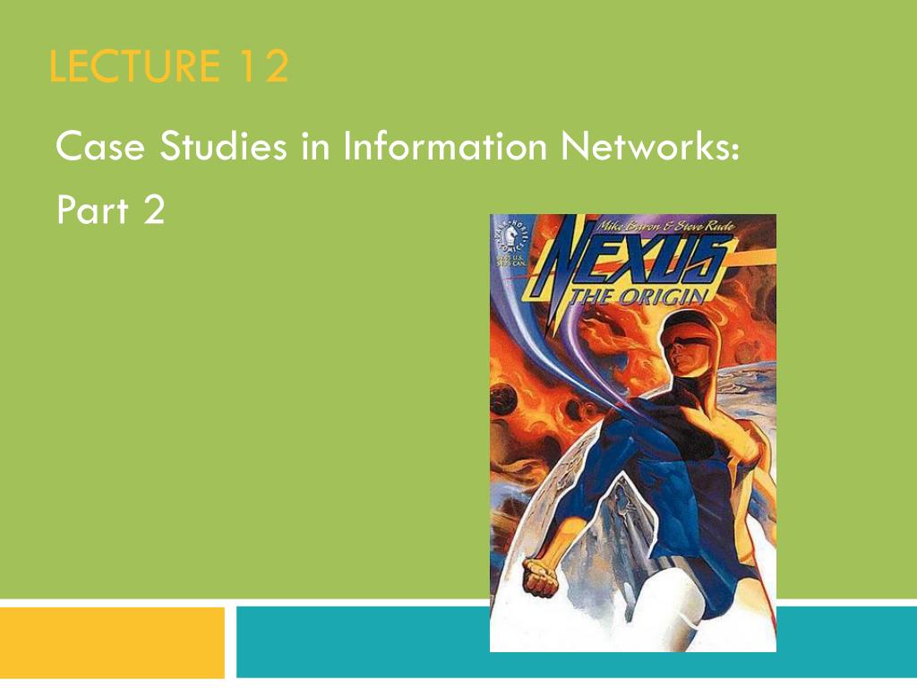 Lecture 12. Case Studies in Information Networks: Part 2. Today’s Plan. Club Nexus Related Work Implications for Design Final Papers. Findings…. Look Familiar?. Findings Cont’d…. Club Nexus shows evidence of: Clustering & Cliques Bridges – ‘weak ties’ ‘Betweenness’ Homophily