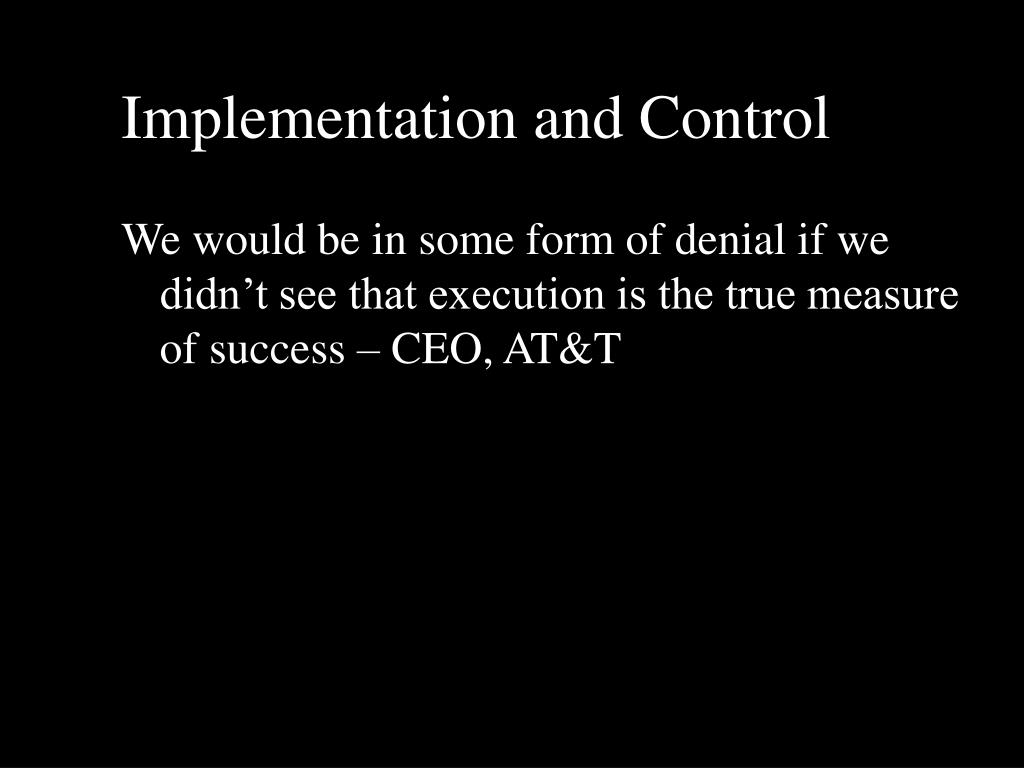 Implementation and Control We would be in some form of denial if we didn’t see that execution is the true measure of success – CEO, AT&T
