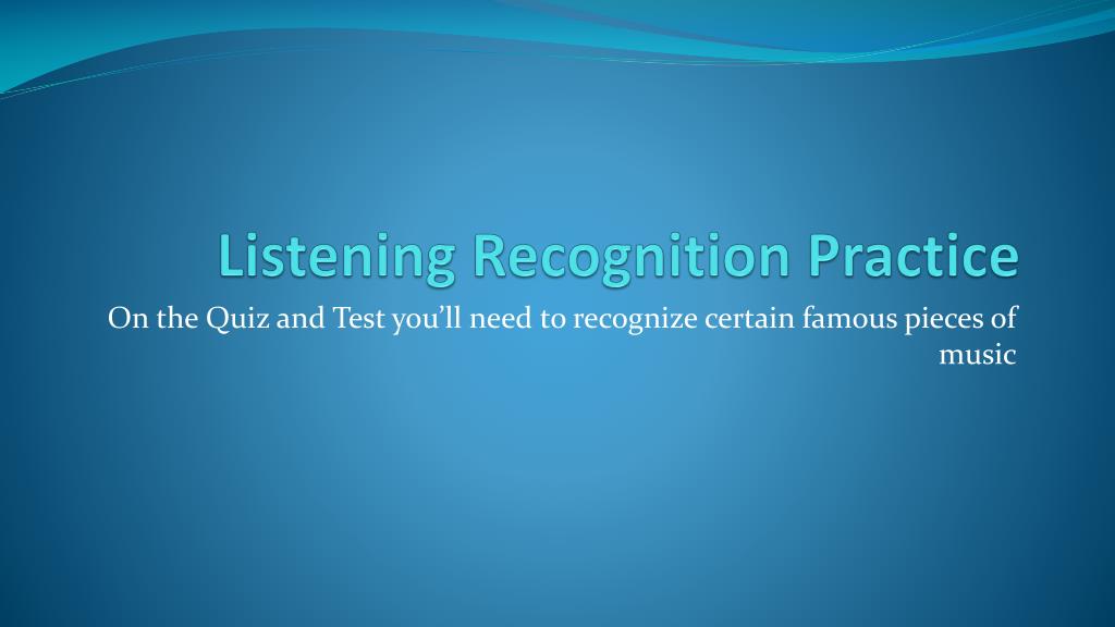 Listening Recognition Practice On the Quiz and Test you’ll need to recognize certain famous pieces of music