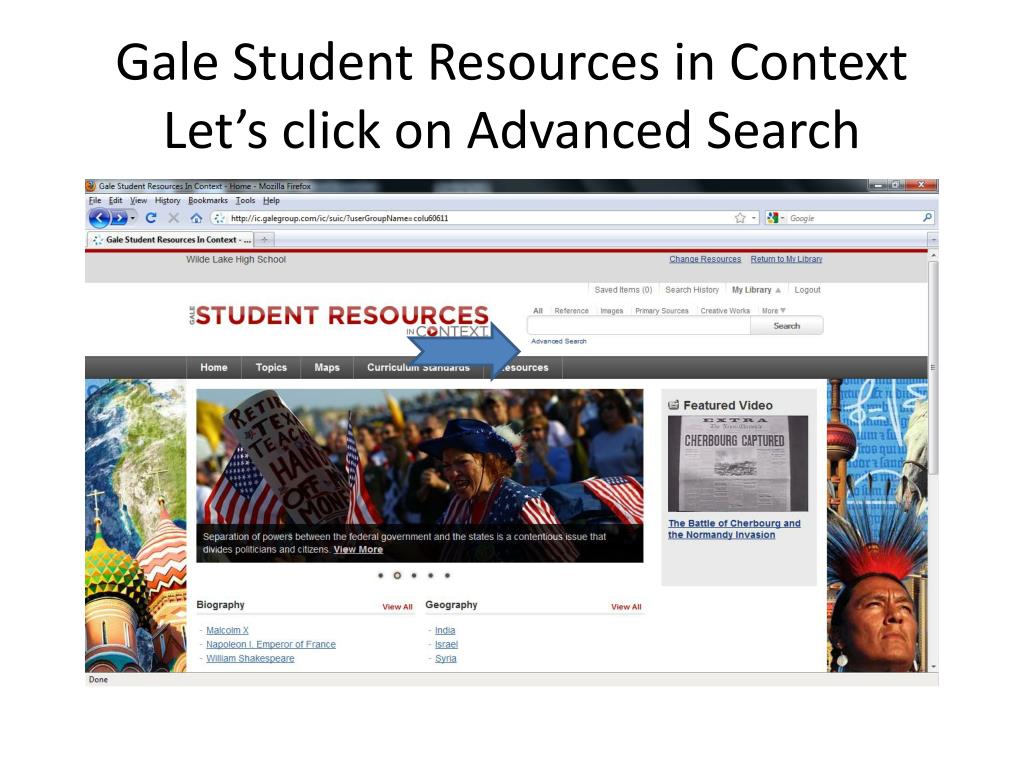 Gale Student Resources in ContextLet’s click on Advanced Search