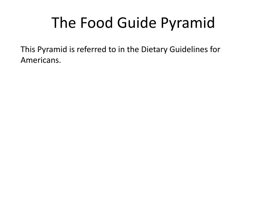 The Food Guide Pyramid This Pyramid is referred to in the Dietary Guidelines for Americans.