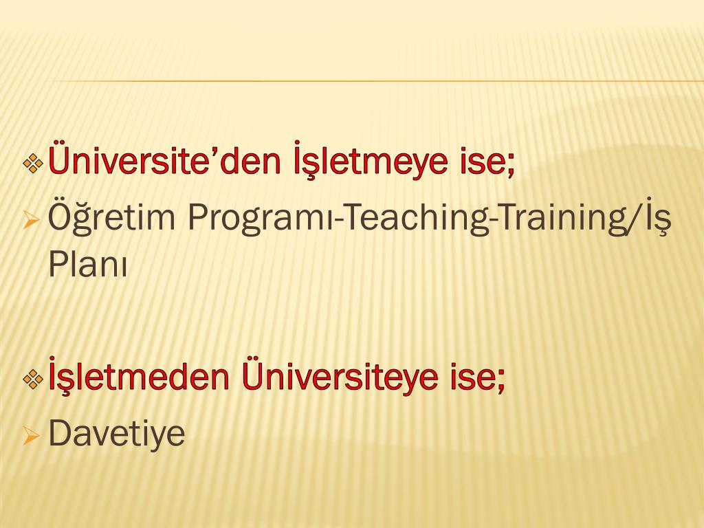 Üniversite’den İşletmeye ise; • Öğretim Programı-Teaching-Training/İş Planı • İşletmeden Üniversiteye ise; • Davetiye