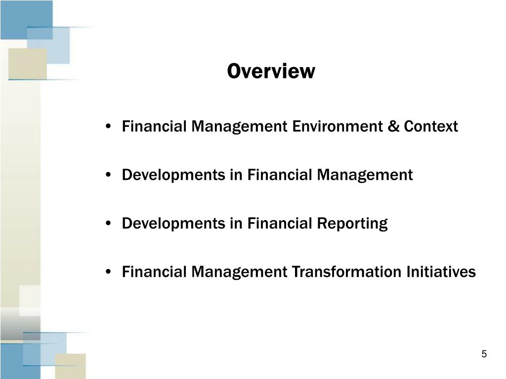 Overview • Financial Management Environment & Context • Developments in Financial Management • Developments in Financial Reporting • Financial Management Transformation Initiatives